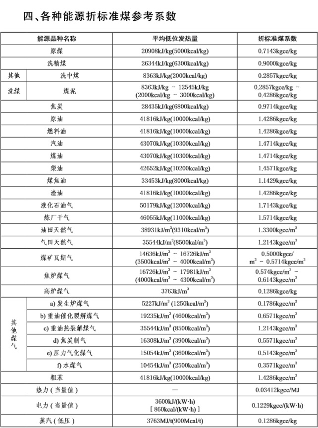 四、各種能源折標(biāo)準(zhǔn)煤參考系數(shù)